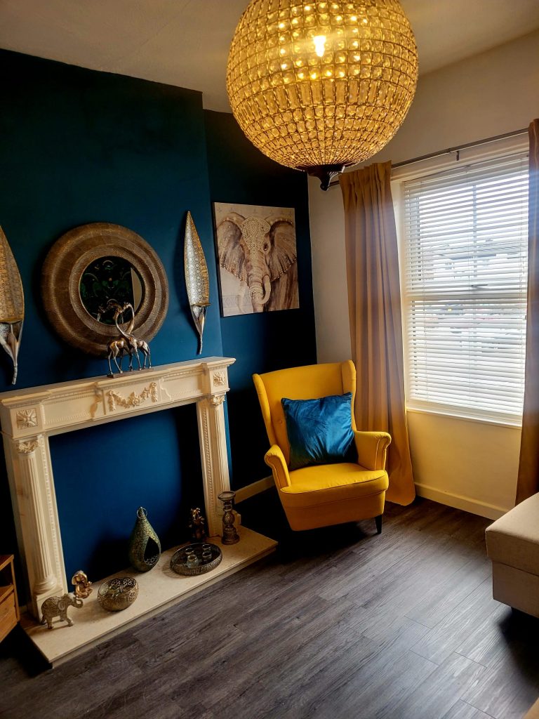 The living room is a beautiful space, with a sofa that converts to a double bed. A large tv with super fast wi-fi. The living room looks out towards Rainhill train station.